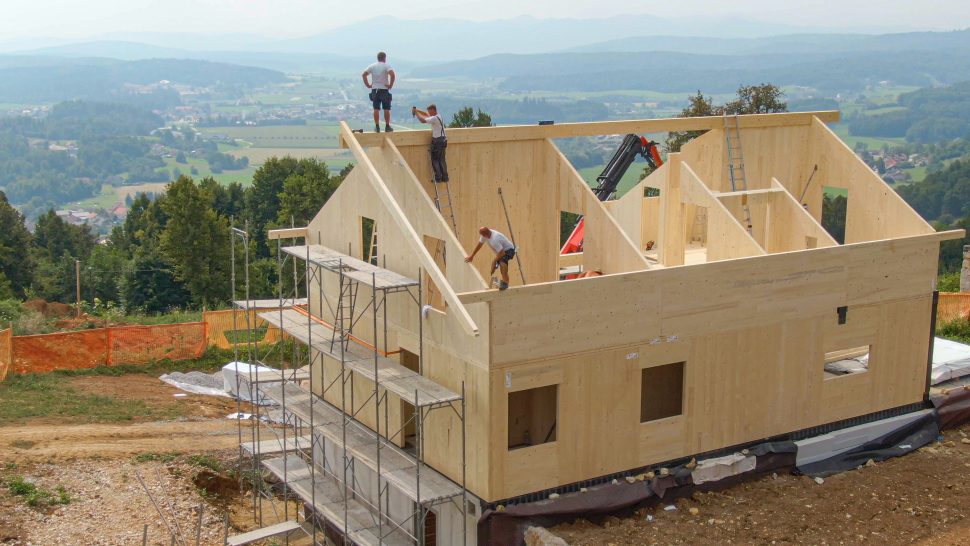 Stavba tohoto domu v horách vzniká z dřevěných CLT panelů, foto: Shutterstock