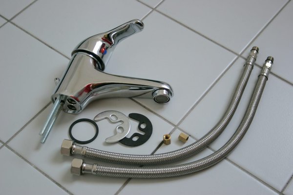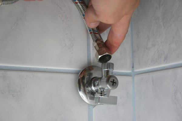 Nyní bude vhodné provést instalaci umyvadla na stěnu a dokončit montáž baterie. Poté bude poslední prací napojení přívodů vody. Pokud to již dříve neprovedl řemeslník, nainstalujte rohové ventily. Při použití pákových baterií je nutné, aby rohové ventily byly opatřeny sítkem, jinak hrozí nebezpečí poškození přesných ploch kulového ventilu armatury. Nasaďte na vývod rohového ventilu převlečné matice přívodních hadiček a dotáhněte. Dejte pozor, abyste hadičku nezkroutili a aby se v žádných ohybech nelámala. Nezapomeňte na těsnění. Trochu více práce bude, je-li baterie vybavena měkkými kovovými přívodními trubkami. Prohněte je tak, aby všechny oblouky byly plynulé a případně je zkraťte. Na zkrácení se používá speciální řezák, vystačíte ale i s pilkou na kov. Musíte však dát pozor, abyste trubku nedeformovali a na řezu případné otřepy dobře začistili.