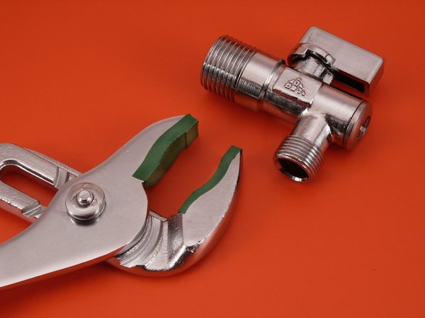 2. Při montáži jakýchkoli chromovaných součástek nesmíte použít kleště nebo klíč, které by neměly dosedací plochy čelistí ochráněné speciálními plastovými návleky nebo jako v našem případě nebyly alespoň opatřené vrstvou plastové lepicí pásky nebo vloženého plastového pásku či kartonu. Jinak armaturu nebo matici poškrábete.