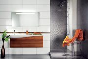Obkládačky a mozaika se pak dají kombinovat v mnoha variantách: mozaikou lze zdůraznit výklenek či sprchový kout, střídáním obkladů ve svislých nebo vodorovných plochách můžeme různě členit prostor i opticky změnit proporce místnosti. Kompletní obklad všech stěn pouze mozaikou se dnes už moc nepoužívá.