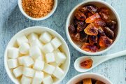 Sacharóza = glukóza + fruktóza: Sacharóza je známá většině lidí jako klasický bílý řepný cukr. Nachází se ale i v třtinovém cukru, hnědém cukru, javorovém sirupu, kukuřičném sirupu, melase a mnoha druzích ovoce.