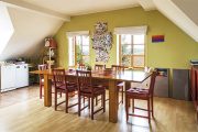 “Připadá mi zbytečné, abychom měli jen my čtyři pro sebe tak velký dům. Ale když už ho máme, tak chci, aby dům žil a poskytl něco příjemného i dalším lidem,” vyznává se Eva ze své filozofie. “Domem by měla proudit energie, přítomnost lidí mu svědčí. I z praktických důvodů – aby se větralo, topilo. Proto když tu nejsme, krátkodobě ho přes agenturu pronajímáme. Hosté mají k dispozici celý dům, kromě naší soukromé ložnice.”