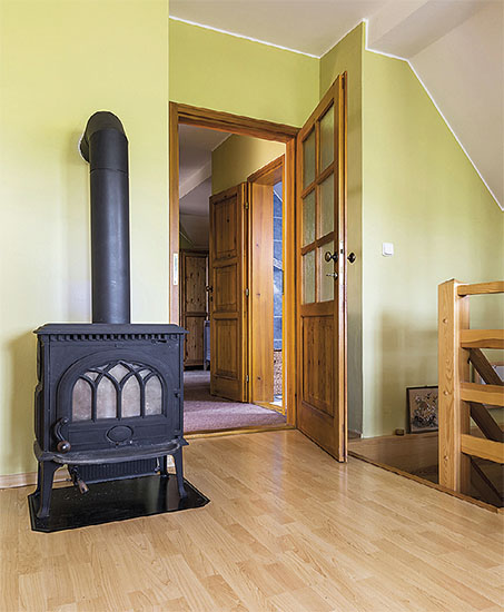 “Změnili jsme i systém vytápění,” přidává se Honza, “zrušili jsme kotel na propan-butan a místo něj pořídili kotel na tuhá paliva a elektrokotel. Krbová kamna v obýváku vytopí půlku přízemí a část podkroví, druhá krbová kamna má žena v podkrovním ateliéru. Zbourali jsme také zadní schodiště – tam je teď kotelna – a postavili nové.”