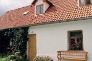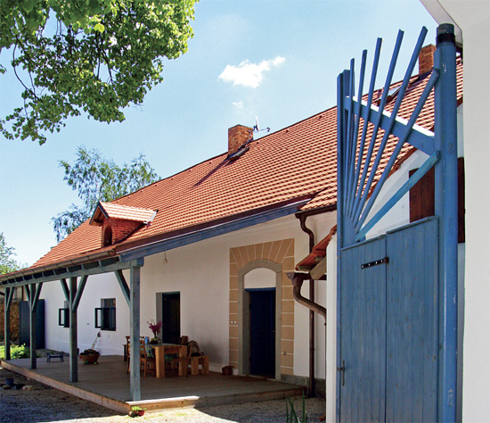 I když za vraty nestojí žebřiňák, ale auto, díky střízlivé úpravě a použití přírodních materiálů dvůr stále „voní“ starými časy