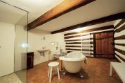 „Při instalaci Iglú bohužel spadla křížová kamenná klenba v bývalé kůlně, do níž se vstupovalo vlevo ze síně. Zedníci si netroufli znovu ji zaklenout, tak nezbylo než prostor rozdělit stěnou a vyzdít pomocí ramenátů klenby valené, jednodušší,“ ukazuje pán domu místnost, v níž je dnes koupelna. Pro vodu už se naštěstí nechodí k pumpě, v obci je zaveden vodovod.