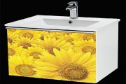 Dekorace v koupelně můžeme nahradit květinovými nebo jinými motivy přímo na nábytkových čelech. Dvířka a zásuvky s pestrými květy vyvolají dobrou náladu i v chladných měsících roku.