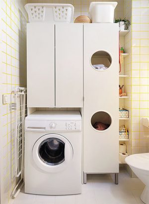Alternativou pevných polic v koupelnových skříňkách jsou praktické drátěné systémy. Zabezpečují přístup vzduchu k čistému i špinavému prádlu.