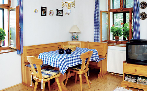 V chalupách měly a mají velké uplatnění rohové lavice u stolu. Proti židlím měly několik výhod – vešlo se na ně víc lidí, než na samostatné židle a obyvatelé chalup je využívali i k ležení. V posledních letech jsou oblíbené rohové pohovky, které zabírají méně místa než pohovka a proti ní umístěná křesla.
