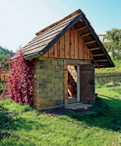 Při rekonstrukci nebylo možné vynechat tu šindelovo-eternitovou střechu. Její půdorys se sice po požáru zmenšil na obdélník čtrnáct a půl metru na osm, ale na štípaný šindel přesto nebyly finance. Levnější řezaný vypadal taky dobře. Ale hodně se prodražil. Už za pět let začal hnít. „Nevěřili byste tomu, ale trvanlivější byl i ten původní ohořelý. Pojďte se podívat,“ vede nás Petr k zadnímu štítu chalupy, který je tím starým kvalitním dřevem částečně obložen. „Natírali ho močůvkou, která má, jak je zřejmé, protipožární vlastnosti.“