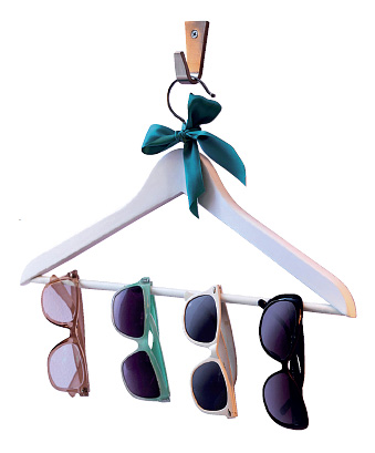Ramínko s tyčí na věšení kalhot lze vesele natřít, háček ozdobit stuhou a máme parádní věšák třeba na sluneční brýle, bižuterii, pásky. Škoda ho schovávat do skříně, může zdobit předsíň.