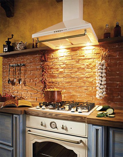 Především v rustikálních kuchyních se na stěně dobře vyjímá obklad z kamene nebo cihelných pásků. Mějte ale na paměti, že i přes ochranný nátěr bude údržba takových povrchů náročnější. A je celkem jedno, jestli se jedná o skutečně přírodní kámen, nebo umělý. Čím je povrch nerovnější, tím obtížnější je čistění.