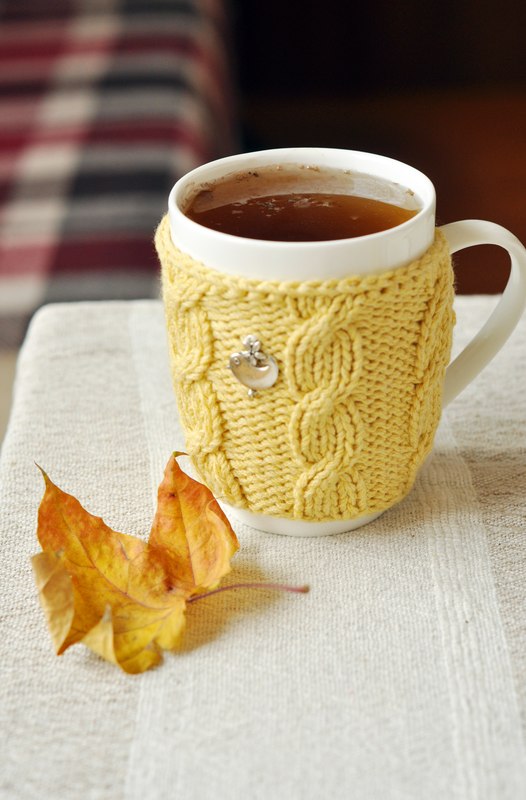 Když fouká ze strnišť, zahřeje nás horký čaj či káva. Aby nám nevystydly, oblékneme hrnku pletený svetřík.