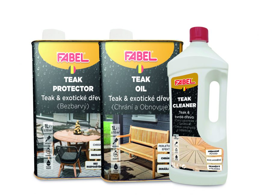 „Zvláštní pozici mezi všemi druhy nábytku ze dřeva zaujímá ten, který byl vyroben z tropického teaku. Má totiž tu unikátní vlastnost, že časem se jeho medová zlatohnědá barva mění na typickou šedavě stříbřitou. Pokud ale chcete uchovat jeho medové zbarvení s proužky přecházejícími do světle až do tmavě hnědé, doporučujeme speciální použít přípravky Teak Cleaner a Teak Protector“, vysvětluje Markéta Pavelková, produktová manažerka společnosti Mountfield. Nechte nový nábytek týden ve venkovním prostředí, pak jeho barevný tón „zakonzervujte“ Teak Protectorem. Pokud budete renovovat již zašlý nábytek, jeho vyčištění zajistí Teak Cleaner, pak následuje zmíněné ošetření Teak Protectorem. Použít můžete také čistý teakový olej, ten je vhodný i na ochranu povrchu stolů před znečištěním skvrnami. Na konci sezony použijte oba přípravky a určitě nezapomeňte dotáhnout šrouby kování. Teakový nábytek může zůstat venku. Mráz, sníh ani vlhko mu nevadí.