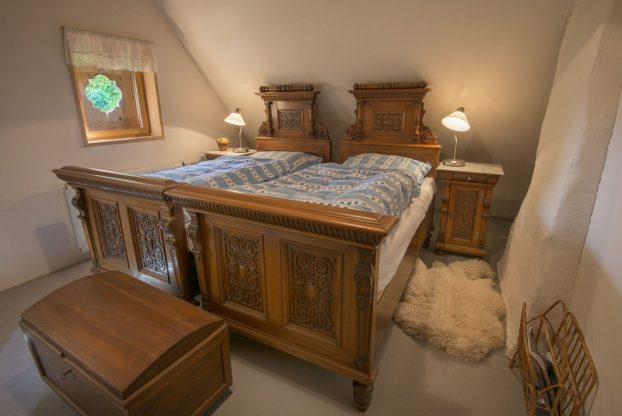 Úzké okénko vedlo do pomocných prostor. Aby se dalo větrat, v pevné venkovní části lze otevírat prostřední tabulku na obrtlík