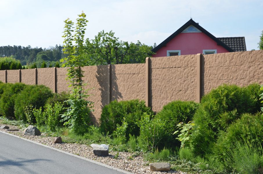 Výstavba může probíhat i suchou cestou, když si zvolíte oplocení z betonových desek, které se zasouvají do betonových sloupků. Mohou být hladké nebo opatřené dekorem imitujícím kámen, cihlu či dřevo. Jejich plus spočívá v neprůhlednosti a účinné zábraně před větrem a prachem. Obdobnou službu udělají dřevěné panely, jež se osazují mezi dřevěné sloupky.