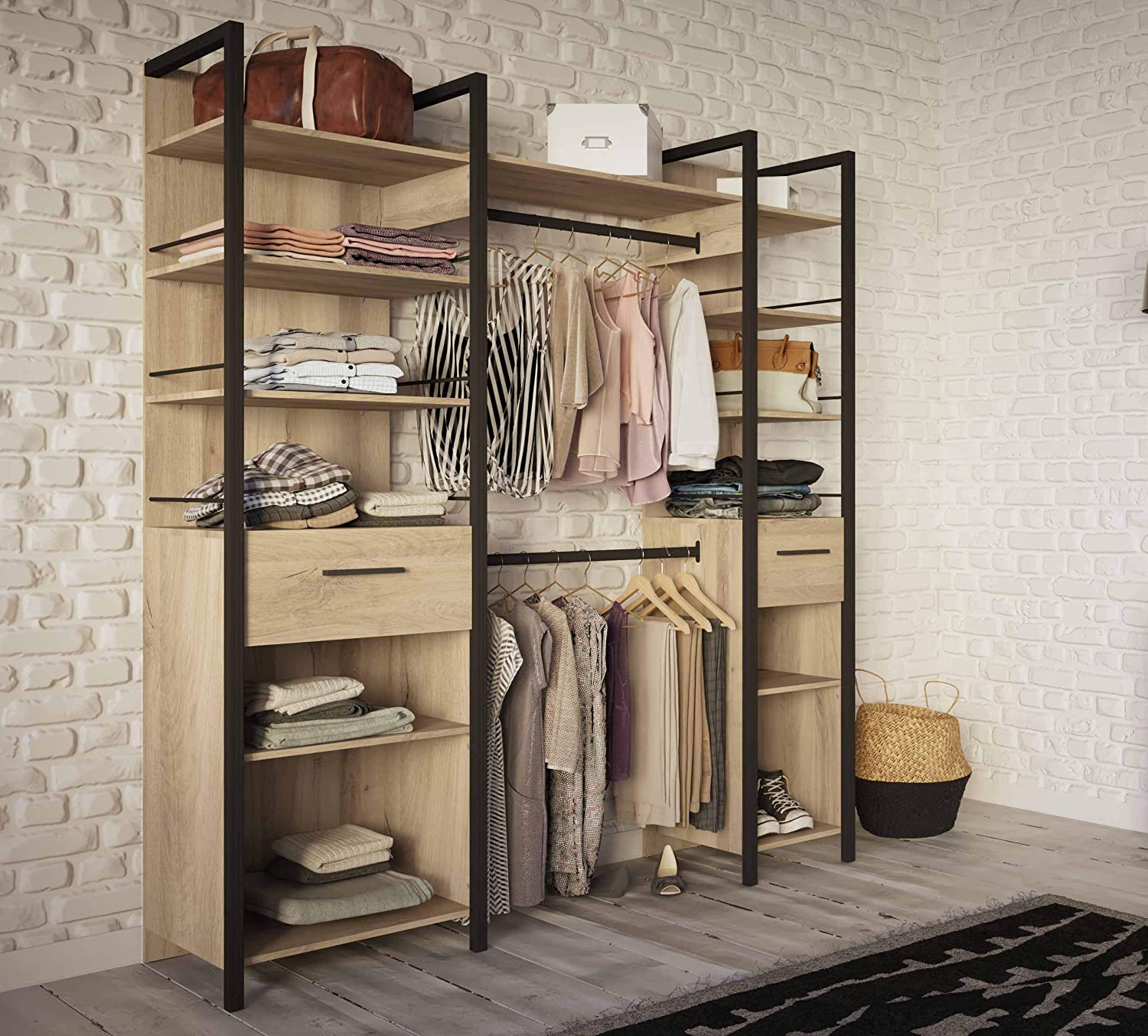 Regálová stěna Riga z lamina v dezénu světlý dub je multifunkční, ale především je určena na oblečení. 207,5 (v.) × 180 (š.) × 49,5 (h.) cm. 7 319 Kč. nabytek-aldo.cz
