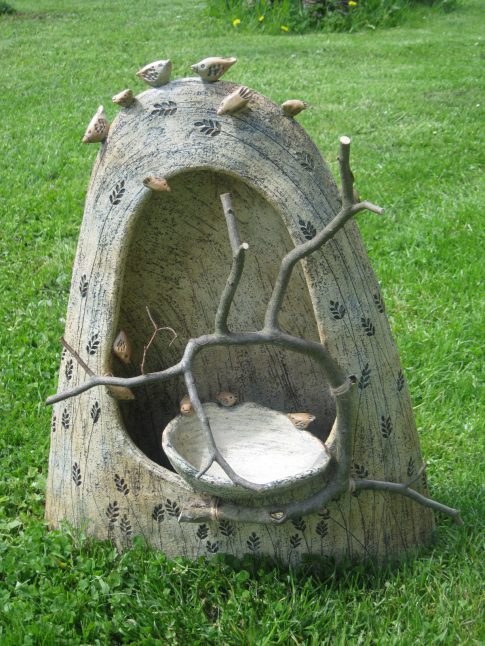 Větve na keramickém pítku nejsou jen pro okrasu, slouží opeřencům k bezpečnému držení (Foto: Keramika Veronika)