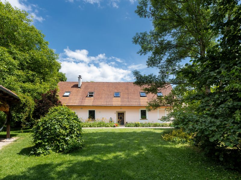„V Hořicích jsme měli rodinný dům, ale byl u něj jen malinký dvorek.Chtěli jsme víc prostoru už kvůli třem psům, takže jsme ho prodali a koupili tuhle chalupu,“ vysvětluje Eva. „Byla úplně vybydlená, léta opuštěná, ale naštěstí suchá. Nebyla tu ani elektřina, ani voda. Manžel rok zůstal doma a celou ji zrekonstruoval. Když jsem odsud první den odjížděla do práce, chyběl i záchod, ale Jirka mě uklidňoval, že až se vrátím, bude stát,“ přidává vzpomínku na spartánské začátky.