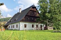 Na zídce z kamenů vyskládaných nasucho, která vymezuje dvorek, visí staré hodiny. Opodál majitelé postavili malou boudu na nezbytné nářadí. Jistě poznáváte již zmiňované dřevěné žaluziové okenice.