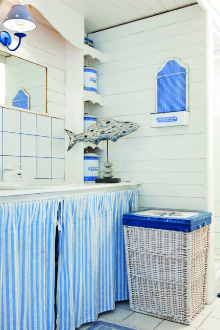 Skutečnost, že se nacházíme v přístavu, připomínají břidlicové tabulky, na nichž se poznamenávají hodiny přílivu a odlivu, údaje důležité pro rybaření. Vrbový košík slouží k odložení zámků, klíčů a slunečních krémů. Na stěnách se tu hromadí slaměné klobouky.