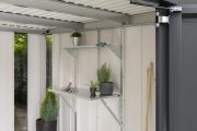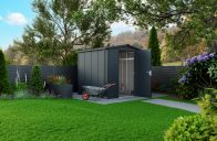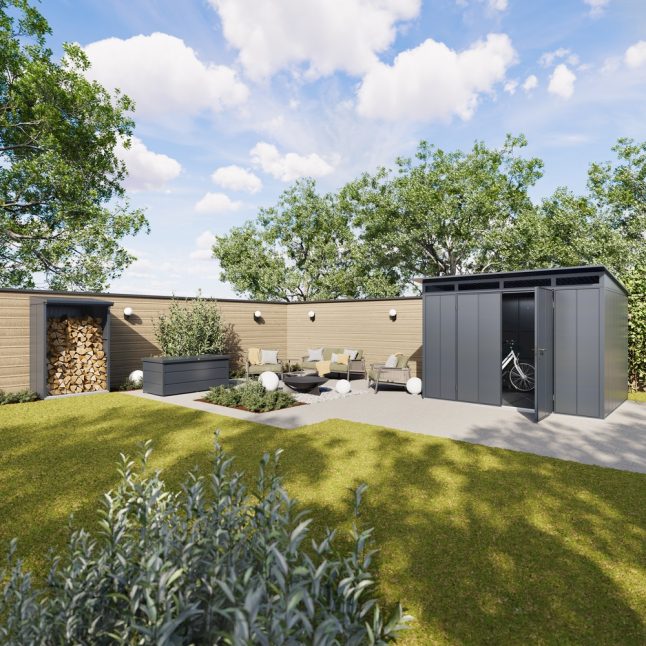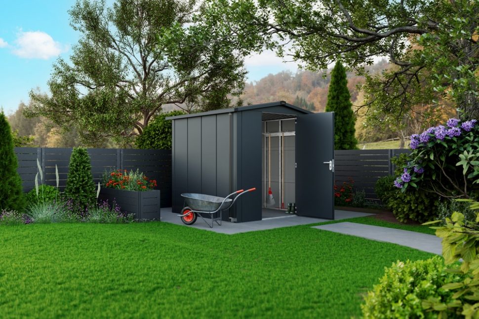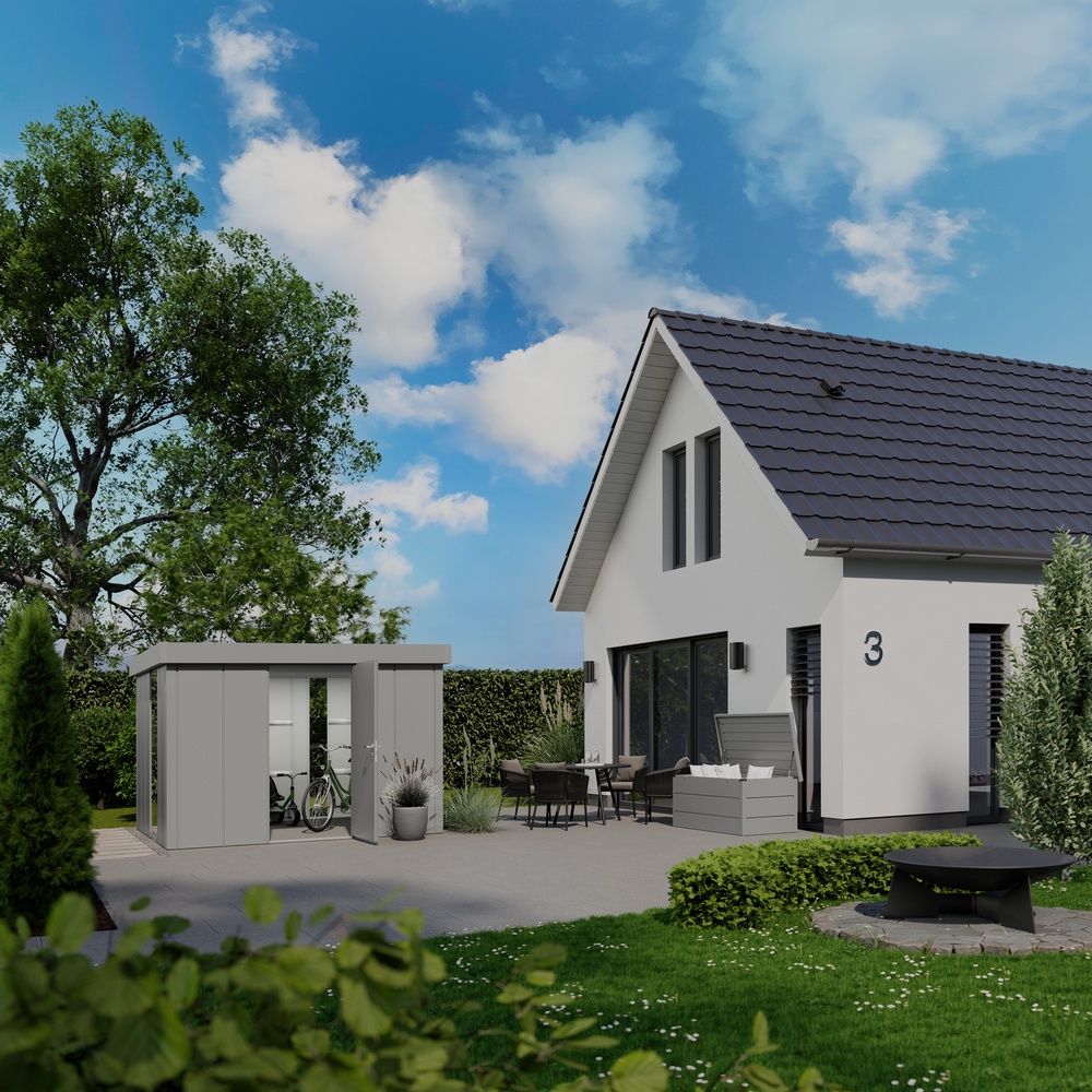 Zahradní domky Juno zaujmou minimalistickým designem a čistými liniemi, díky nimž se snadno přizpůsobí moderním typům rodinných domů. K dispozici jsou varianty se sedlovou nebo plochou střechou a v několika barevných provedeních, například v moderní antracitové šedé nebo šedém hliníku.