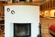 Obytnému prostoru vévodí veliký krb s teplovodním výměníkem o výkonu 22 kW. Původně se o dodávku teplé vody do radiátorů dělil s kotlem Atmos. Přebytkem energie se ohřívala ještě voda v akumulační nádrži o kapacitě 800 litrů, která přišla „ke slovu“, když kotel a kamna vyhasla.
