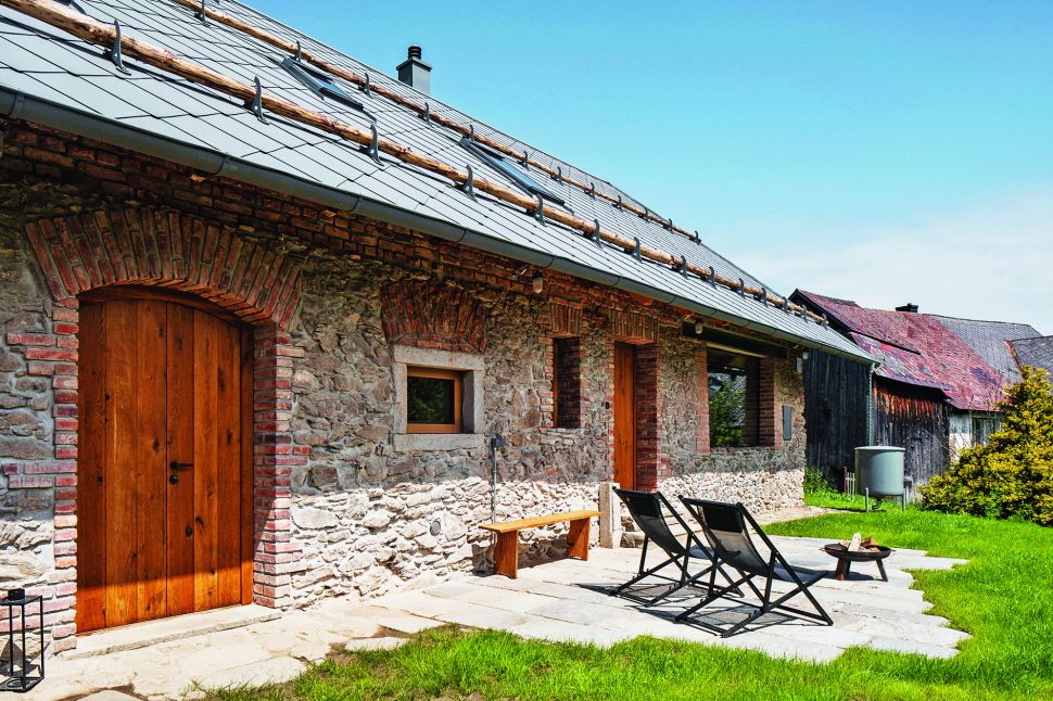 Investor toužil najít útočiště před rušným městským životem. Cílem byla autentická, ale novodobá rekonstrukce s ohledem na krajinu a udržitelnost. „Dosáhli jsme toho převážně díky místním zručným a trpělivým řemeslníkům. Na tom domě je vidět vlastně všechno, co řemeslníci dělali, a nic není schováno,“ popisuje vzhled Vojtěch Hybler. Vyzdvihuje zejména pískové omítky, opracování vnější kamenné fasády, venkovní kamenné plochy, výbornou práci obkladače i místního truhláře, který vyráběl dveře a kuchyni. Konečný výsledek stavby tak zformoval přátelský dialog mezi řemeslníkem a architektem. A to vůbec není málo!