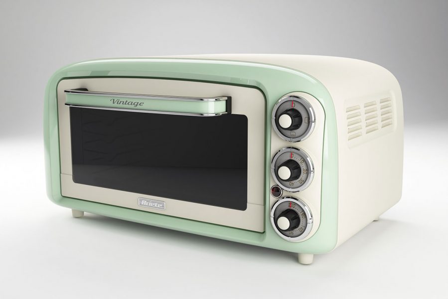 Retro volně stojící elektrická trouba Ariete Vintage 979/04, objem 18l, s rožněm a sběračem drobků. 1 999Kč, foto: ariete