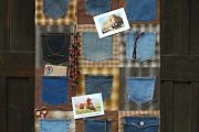 Modrá džínovina pěkně ladí s pestře potištěnou bavlnou, dá se tak zkombinovat například u tašek, pouzder, obalů na knihy, hraček. Zdobit ji můžeme i prošíváním, barevnými aplikacemi, výšivkou, našíváním korálků. Pomocí zbytků kalhot nebo sukní lze polepit papírové nebo překližkové pořadače, krabice na drobnosti, malé zásuvky.