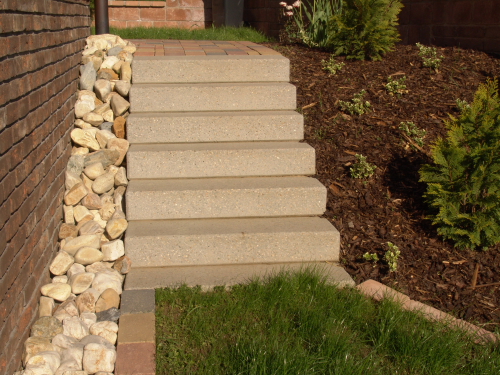 Standardní schodišťové stupně jsou vyráběny litím pohledového betonu do forem, nejčastěji s celoplošným tryskaným povrchem. Vyrábí se pouze v přírodním provedení, ale v několika typových variantách – přímé, nájezdové, rohové a obloukové. Všechny typy stupňů lze spolu vzájemně kombinovat a dle terénních dispozic vybrat nejvhodnější řešení. Většina schodišťových stupňů je vyráběna na zakázku dle individuálních požadavků zákazníka.