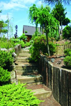Zvlněný terén mezi záhony překonáme pomocí několika schůdků