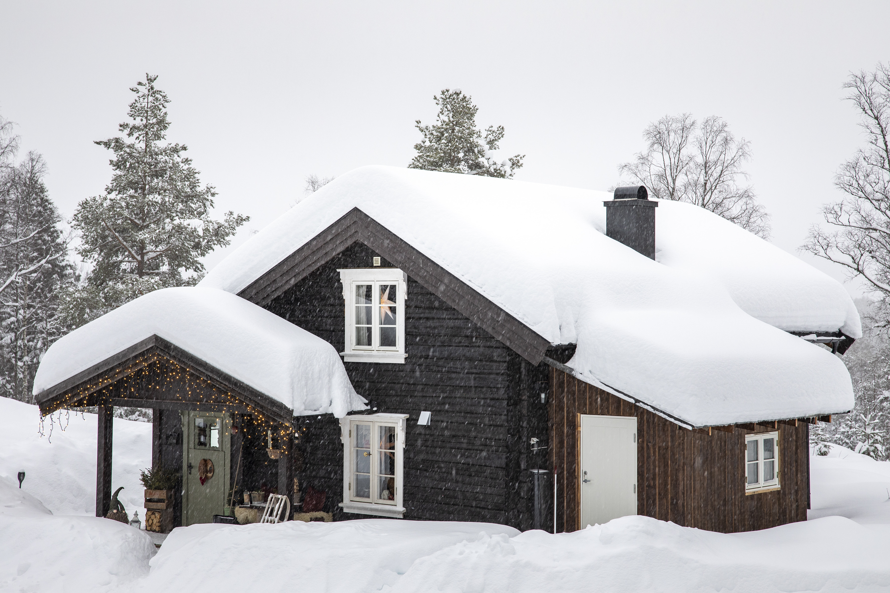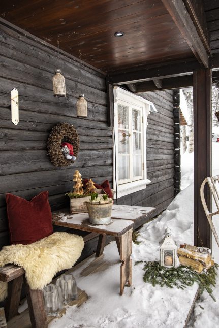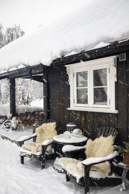 Lene a Øystein využili poslední rok k přestěhování obsahu stodoly a roubeného skladu do chaty, aby vytvořili ničím nenarušený dvůr obklopený srubovými stavbami, které mají v Norsku tradici. A dalším objektem, který je třeba vzít v úvahu, je nedávná přístavba v podobě zádveří, takže se dostane ještě více prostoru pro již dospělé děti, které sem také jezdí.