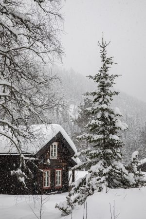 Obec Slettungdalen má řídce rozptýlenou zástavbu a některé chaty leží na okraji lesa.