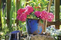Kamenná deska s mozaikou z keramických střepů odolá všem rozmarům počasí. Takový kousek může stát venku po celý rok