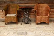 Při likvidaci šicího stolku vás možná napadne: Proč hezky tvarovanou podnož vyhazovat? Po malých změnách – odstranění šicího stroje a výměně stolové desky – máme nový, opět funkční kus nábytku, který může dělat parádu jak uvnitř domu, tak venku na zahradě. Nepočítejte ovšem s častým přemísťováním, odolnost a stabilita stolku z litiny je vykoupena značnou hmotností.