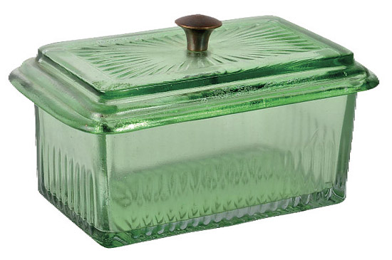Na stolech se objevují i skleněné tácy, etažéry (vícepatrové tácy), dózy, cukřenky, slánky, konvičky na ocet a olej, talíře s poklopy, vázy i svícny. Stále častěji se z tohoto křehkého materiálu dělají i talíře a talířky.