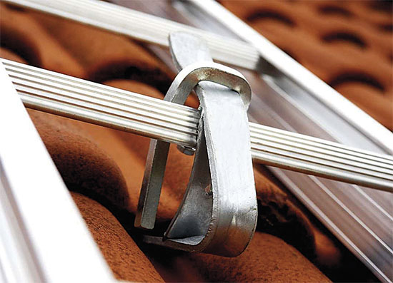 Detail háku pro bezpečné uchycení střešního žebříku, který poslouží při opravách nebo čištění střechy