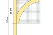 3. Pro výrobu oblého dílu si vytvoříme šablonu z tvrdého papíru a tu 4× obkreslíme na fošnu síly 50 mm. Díl ve tvaru oblouku vyřežeme z fošny přímočarou pilou (musí mít hloubku řezu větší než 50 mm). Po vyřezání opracujeme oblé plochy brusnými papíry, až dosáhneme plynulé křivky. Nyní můžeme sestavit okrasnou konzolu. Všechny díly jemně vybrousíme brusným papírem a zabrousíme hrany do malého obloučku