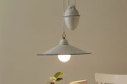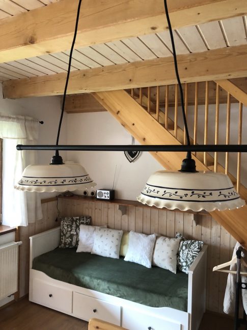 Zatímco dnes vnímáme svítidlo jako samozřejmou součást každé místnosti, ve starých chalupách bylo světlo dlouho vzácností. Nejprve se používaly svíčky, louče nebo petrolejové lampy a teprve s příchodem elektřiny se do obytných interiérů začala dostávat závěsná elektrická svítidla. V chalupách se pak nejčastěji objevovaly skleněné lustry, často v kombinaci s mosaznými nebo porcelánovými prvky. Typická byla lampa se závažím, tedy závěsné stropní svítidlo s pákovým mechanismem, který umožňoval výškové nastavení podle potřeby. Mléčné nebo jemně tónované sklo vytvářelo měkké, rozptýlené světlo, které přirozeně ladilo s interiérem.