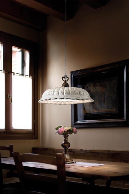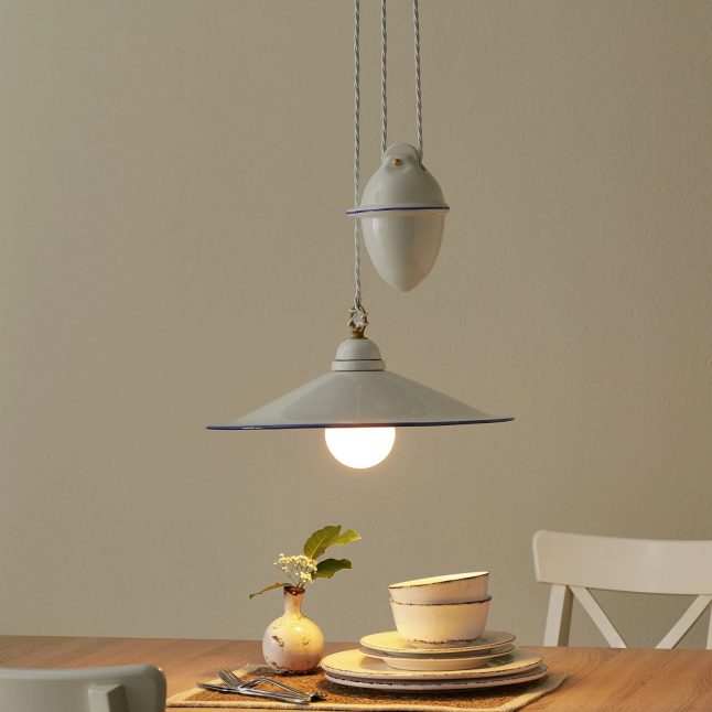 Prosté a přitom půvabné závěsné svítidlo Piatto je ideálním doplňkem venkovské kuchyně či jídelny. 6 049 Kč, foto: Lumories.cz