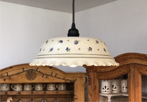 Dnes výrobci závěsných svítidel navazují na tradiční tvary a materiály, které jsou ale doplněny o současné technologie a designové přístupy. Oblíbená jsou svítidla z ručně foukaného skla, často v matném nebo jemně kouřovém provedení. Keramická stínidla s glazurou mnohdy nesou ručně malované dekorace inspirované lidovým uměním. V interiérech, které kombinují staré a nové, se uplatňují také svítidla v kombinaci dřeva a kovu, čímž prostoru dodávají modernější, ale stále venkovský vzhled. Mnohá svítidla navazují na klasické tvary, jsou však upravena pro dnešní potřeby.