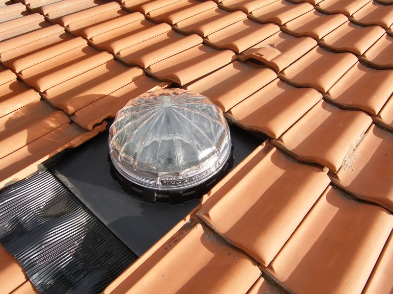 Ukázka relativně nenápadného umístění kopule světlovodu na střeše z pálené krytiny, foto: Lightway