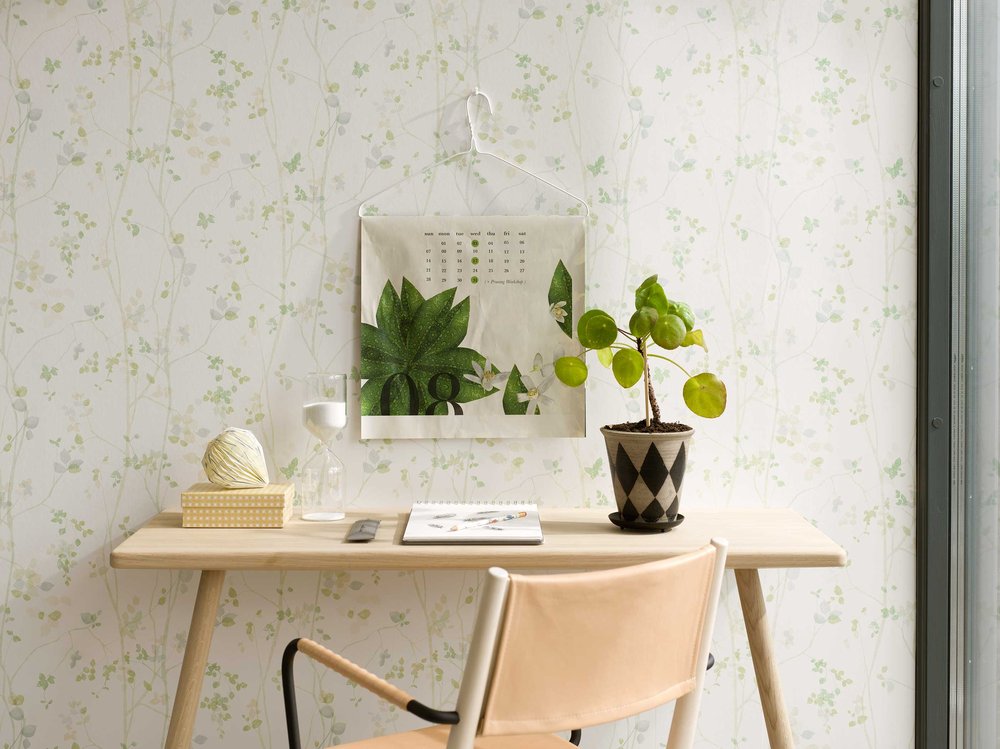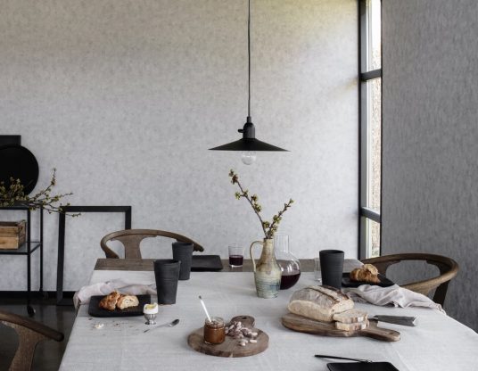 Pomocí tapety také můžeme v interiéru vytvořit jednotlivé funkční zóny a oddělit třeba jídelní kout či místo pro relaxaci. Její efekt navíc lze podpořit vhodnou výmalbou ladící k odstínům použitých v dezénu tapety.