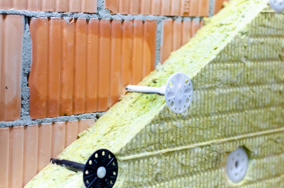 Ukázka použití kruhových kotev na panelech z minerální vlny, které se u novostavby montují rovnou na neomítnuté obvodové zdivo. Foto: Shutterstock