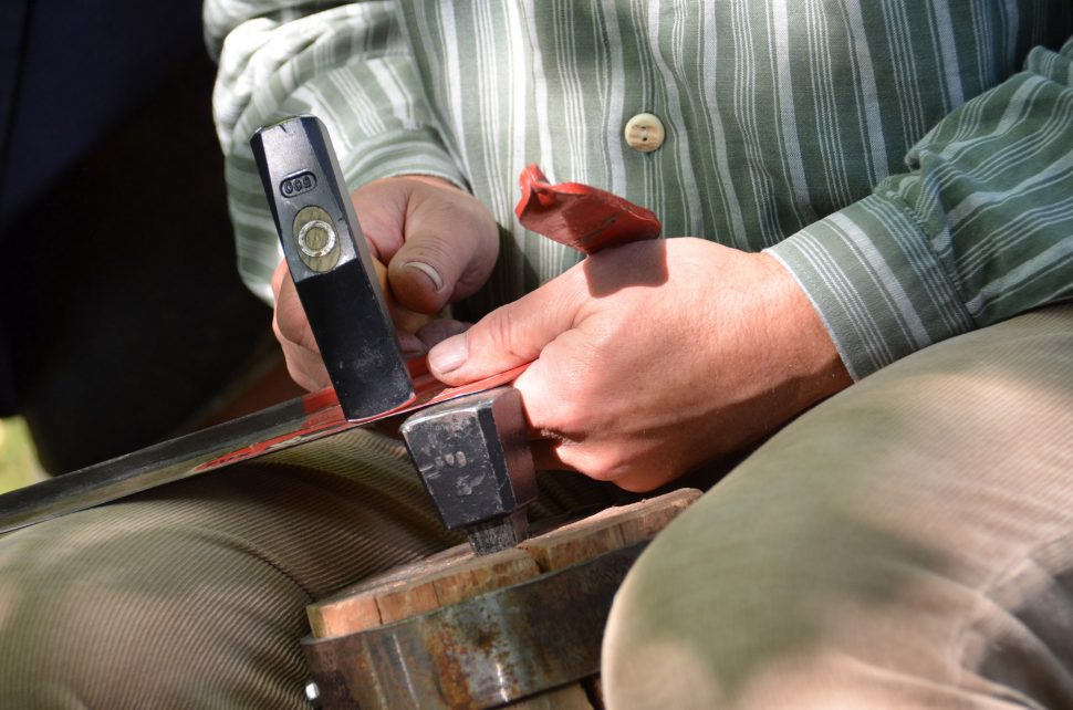 Nová kosa či srp se musí naklepat. Pravidelné naklepání je nutné provádět po celou dobu užívání. Foto: Shutterstock