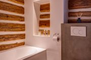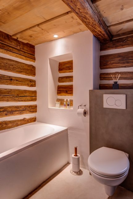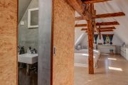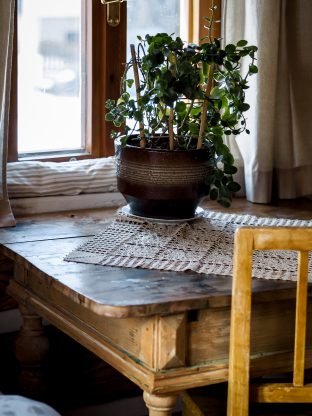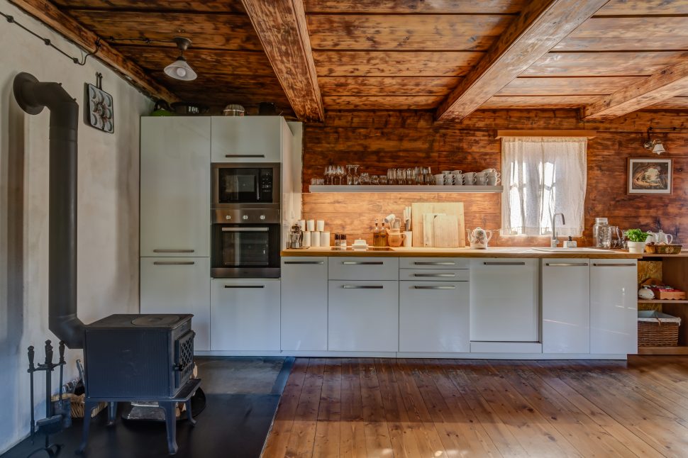„Chtěli jsme zachovat jejího původního ducha, abychom se v ní cítili opravdu jako za starých časů. Zároveň se nám líbilo, že nabízí komfort v podobě nové kuchyně nebo dostatečný počet koupelen. V přízemí se žije – velká světnice propojuje kuchyni, jídelnu a obývací prostor a slouží jako místo, kde se tráví čas od rána do večera.“ Je tu dost místa i díky tomu, že velkou technickou místnost využili nejen jako místo pro pračku, sušičku i druhou chladničku, ale nabídla i spoustu úložného prostoru. V chalupě je moderně zabydlené podkroví, kam vede nové schodiště. Schody do prvního patra se zachovaly původní a bez jejich líbezného vrzání si to už v chalupě nikdo nedovede představit. Ložnice jsou tedy ve dvou podlažích, každé patro má svou koupelnu s toaletou. Právě koupelna v podkroví byla jedním z míst, které potřebovalo úpravy, konkrétně se tam dodělával sprchový kout. Předloni také upravovali koupelnu v přízemí, kde přibyly po celé stěně obklady.