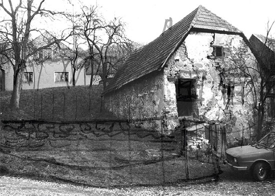 Vzhled domu i předpokládané venkovní úpravy si majitel namaloval už do fotografie staré stavby. To ještě počítal, že ji spolu se svým kamarádem statikem zachrání. Náčrtky se pak hodily při nové výstavbě. „Začal jsem si projektovat a těšit se, jak bude dům vypadat, ještě ani nebyly odklizeny sutiny. Pohrál jsem si hlavně s vnitřní konfigurací. Chtěli jsme tady žít standardním příjemným způsobem, tedy mít kuchyňku, koupelnu, záchod, pracovnu a nějaké spaní. A samozřejmě dost prostoru pro relax a setkávání s přáteli.“