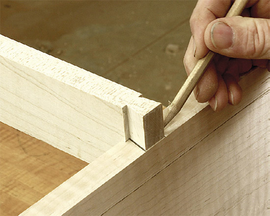 Rohy ozubů se nedoříznou, odstraňují se vydlabáním. Dlabání je především u měkkého dřeva snazší, pokud se rohy naseknou například škrabkou nebo kusem pilového listu.