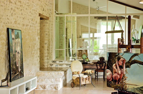 Sophii a Eddymu se ve francouzském Montboyer podařilo skloubit dvě vášně – umění a přírodu. Výsledek je okouzlující. Dům zařízený kombinací tradičních kousků nábytku a roztodivných objektů má až požitkářskou atmosféru, která je plně v harmonii s životním stylem této sympatické dvojice.