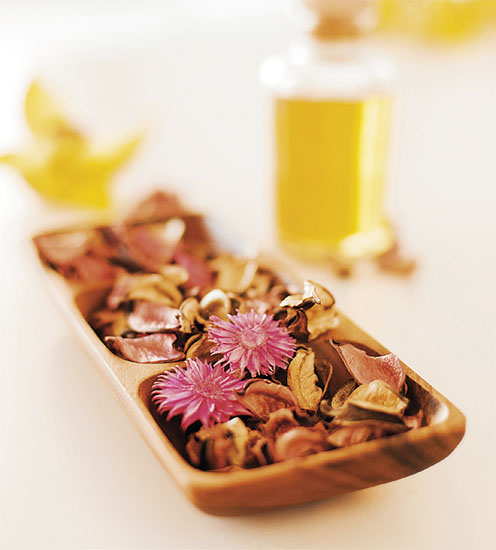 Rádi si připravujeme i pot pourri. Vonné směsi sušených bylin, plodu, kousku ovoce a květu vložené do krabiček, na misky nebo do sáčku. Když přestanou vonět, lze do nich přidat kapky aromaesencí nebo vonných oleju. Ve vánočním čase k nim mužeme přidat lístky jmelí, modřínové šišky a chvojí.